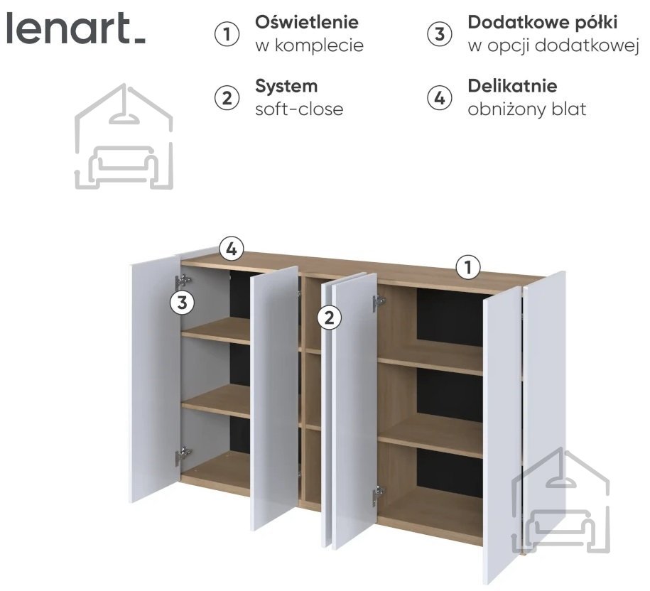 - Barva korpusa: san remo – topla, naravna barva, ki prinaša občutek udobja in elegance v vsak prostor.