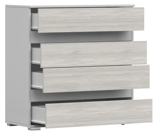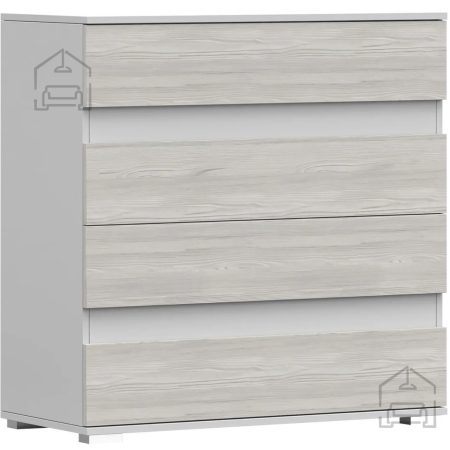 Robustna laminirana pohištvena plošča zagotavlja dolgotrajno uporabo in enostavno vzdrževanje, medtem ko ABS folija na robovih preprečuje obrabo in podaljšuje življenjsko dobo pohištva. S štirimi prostornimi dvižnimi predali boste imeli dovolj prostora za shranjevanje oblačil, posteljnine ali drugih osebnih predmetov, kar vam omogoča, da ohranite svoj prostor urejen in brez nereda.
