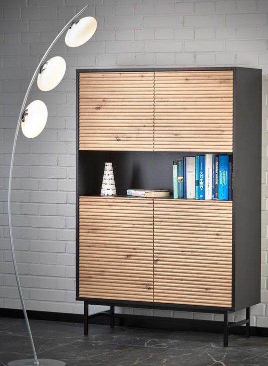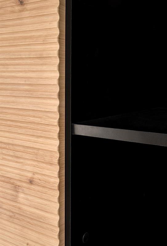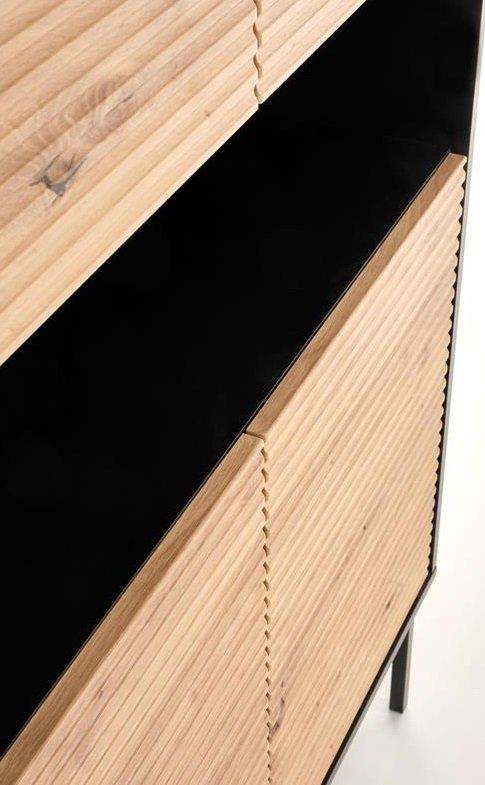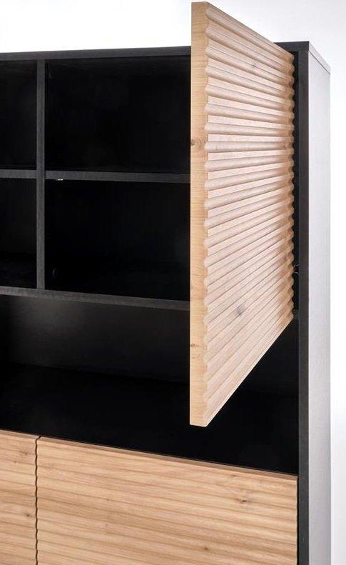 - Inovativna oblika je izdelana iz rezkanih front in barvne kombinacije črnega in obrtnega hrasta.