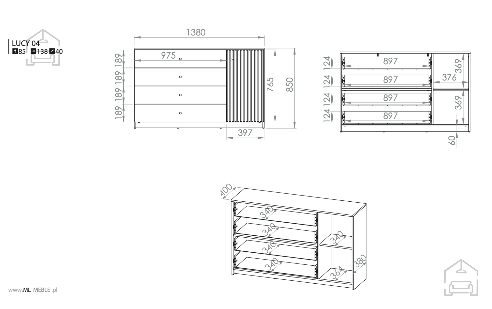 Dimenzije: 1380x850x400 mm