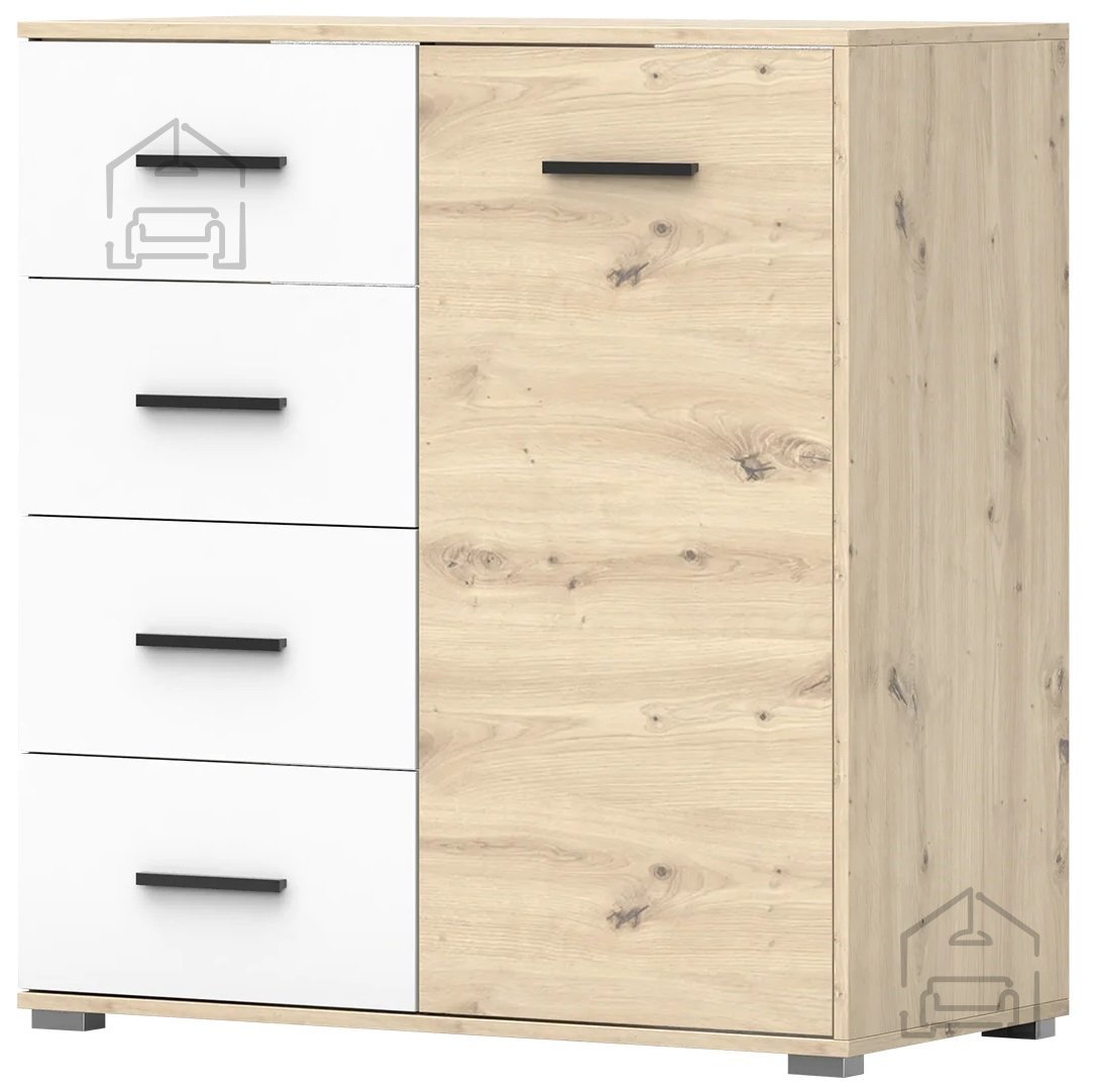 Komoda Marsylia je opremljena s štirimi predali in eno omaro, kar omogoča optimalno organizacijo vaših stvari. Ne glede na to, ali potrebujete prostor za shranjevanje oblačil, knjig ali drugih pripomočkov, ta komoda nudi dovolj prostora za vse. Klasičen odlagalni kos, ki se popolnoma prilega večini aranžmajev, zagotavlja dodaten prostor za shranjevanje priročnih stvari.