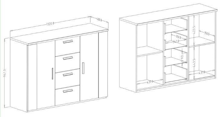 Z dimenzijami 132x40x94 cm, komoda Sigma ponuja obilo prostora za shranjevanje. Omogoča vam, da ohranite vaš dom urejen, saj lahko vanjo shranite oblačila, knjige, dekorativne predmete in še veliko več. Njene prostorne police in predali omogočajo enostavno organizacijo vaših stvari.