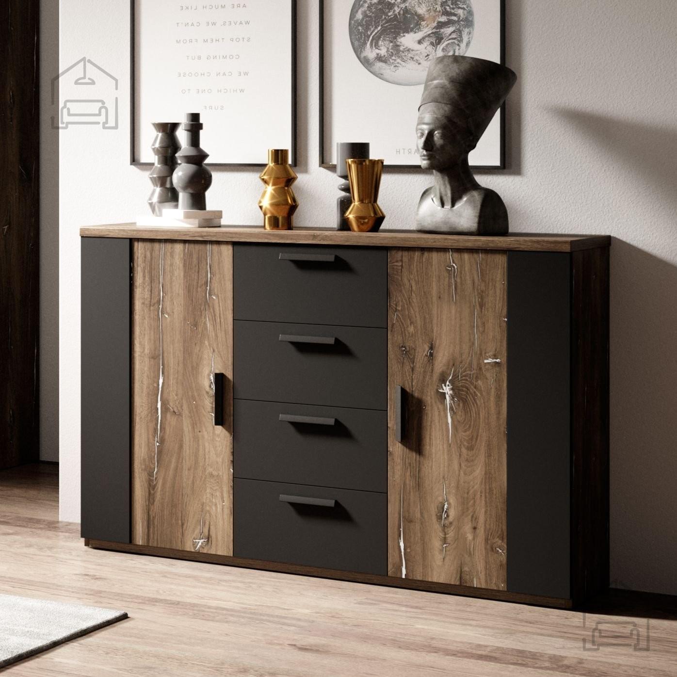 Barva fronta: črnaDimenzije: 1320x933x380 mm Odkrijte eleganco s komodo Galaxy - samostanski hrast/črna - 24ZBEA26