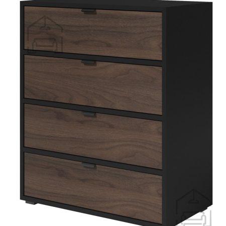 Dimenzije: 900x1060x450 mm Praktična komoda ergonomske oblike in stilskega dizajna ima štiri prostorne predale. Komoda v barvi črna/oreh je primerna za dnevne sobe, spalnice, kopalnice, pisarne itd. Zaradi svoje uporabnosti bo komoda Verona 6 postala odličen dodatek k vaši notranjosti. Komoda je izdelana iz laminirane pohištvene plošče. Pestra izbira elementov sistema Verona različnih oblik in velikosti bo pomagala opremiti vsako spalnico ali garderobno omaro. Pohištvo iz najkakovostnejše laminirane plošče vam bo omogočilo dolgoletno vzdržljivost. | Material: MDF