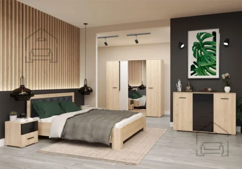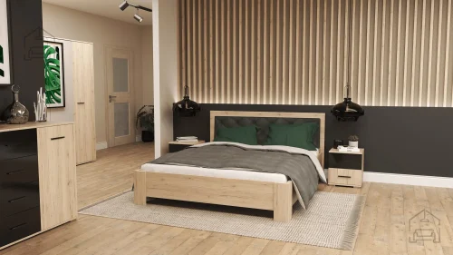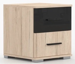 Njen eleganten dizajn v kombinaciji temnega hrasta in črne barve omogoča, da se omarica popolnoma vključi v spalnico Beta, ki je na voljo tudi v barvni različici san remo + bela. Pohištvena kolekcija Beta vključuje udobno posteljo s praktičnim predalom za posteljnino, kar zagotavlja celovito rešitev za vašo spalnico.