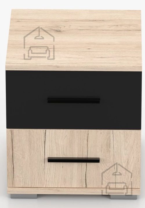 Material: Ta nočna omarica je izdelana iz laminirane pohištvene plošče debeline 16 mm, kar ji daje trdnost in dolgotrajnost. Natančna izbira materialov zagotavlja, da bo omarica zdržala vsakodnevno uporabo brez znatnih znakov obrabe.