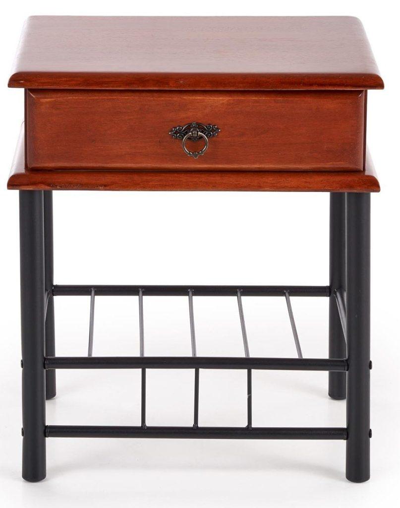 Nogice: črne, kovinskeDimenzije: 480x550x370 mm Nočna omarica Fiona je izdelana iz masivnega lesa z dvižnim predalom in kovinsko polico v spodnjem delu, ki je namenjena shranjevanju in odlaganju vaših potrebščin. | Material: Iveral in MDF