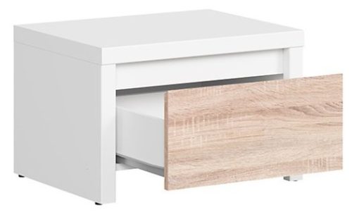 Kljub svoji kompaktni velikosti nočna omarica ponuja praktično rešitev za shranjevanje. Ima en predal, ki omogoča shranjevanje različnih predmetov, pri čemer ohranja čist in urejen videz spalnice.