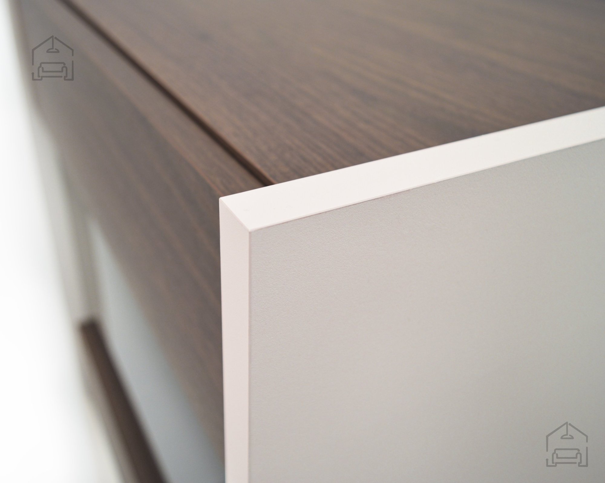 Kolekcijo pohištva Kobe opredeljuje izrazita in kontrastna kombinacija toplih zaključkov: oreh okopi in peščeno bež. Ustvarja prijetno vzdušje in je kot nalašč za sodobno, minimalistično notranjost v japonskem slogu.