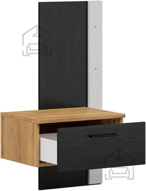 Meble iz kolekcije Maio so popolna izbira za tiste, ki želijo ustvariti moderen in industrijski videz v svoji spalnici. Kombinacija naravnih lesnih odtenkov in črne barve daje prostoru sodoben in stiliziran videz, ki nikoli ne gre iz mode. Ta nočna omarica ni le funkcionalna, temveč tudi estetsko privlačna, kar jo dela nepogrešljivo v vsakem domu.