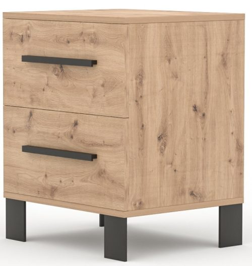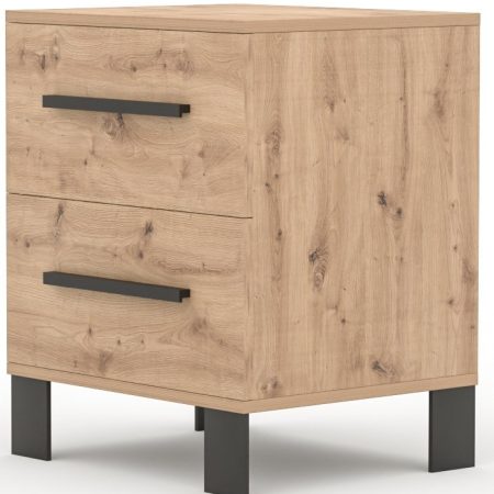 S svojim modernim dizajnom se nočna omarica Malen brez težav prilega vsaki notranjosti. Barva artisan hrast prinaša občutek topline in narave v vašo spalnico, medtem ko črni plastični ročaji dodajo sodoben pridih. Noge iz plastike zagotavljajo stabilnost in trajnost, kar je ključno za vsak kos pohištva. Ta omarica ni le funkcionalna, temveč tudi estetsko privlačna, kar jo dela idealno izbiro za sodobne domove.