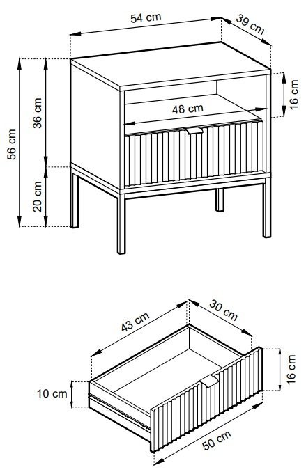 • Nočna omarica, dimenzije: 54x56x39 cm