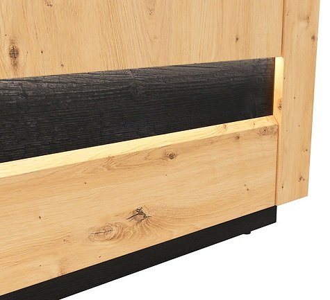 Sodobna barvna kombinacija: barva korpusa v samostanskem hrastu v kombinaciji s črno fronto ustvarja eleganten in moderen videz, ki se odlično ujema z različnimi stili notranje opreme.