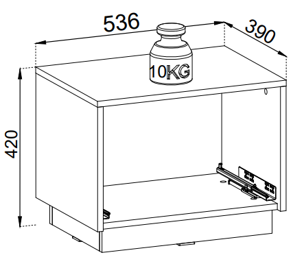noge: 18 mm MDF podstavek na plastičnih vodilih.