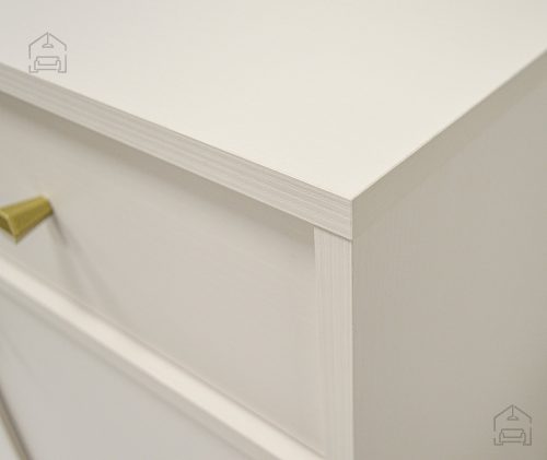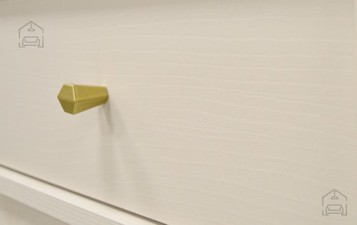 • Ročaji na predalih so izdelani v zlati barvi, kar dodaja pridih elegance in luksuza.