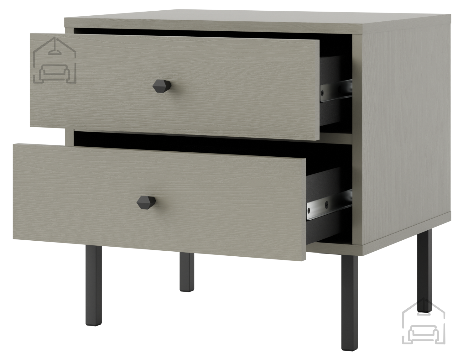 Nočna omarica Beta je opremljena s tremi prostornimi predali, ki zagotavljajo dovolj prostora za shranjevanje vseh vaših nočnih potrebščin. Od knjig in revij do osebnih predmetov, vse bo varno shranjeno na dosegu roke. Predali se gladko odpirajo in zapirajo, kar omogoča enostavno uporabo in dodatno udobje.