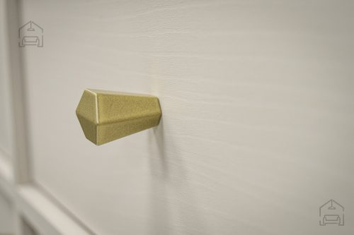 Ročaji na predalih so izdelani v zlati barvi, kar dodaja pridih elegance in luksuza.