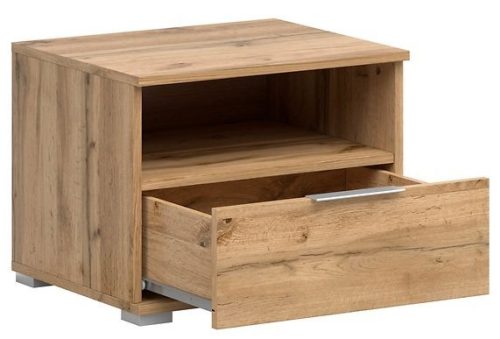 • Praktična zasnova: nočna omarica je opremljena s predalom in odprtim predalom. To omogoča, da na njenem pultu postavite budilko, knjige ali druge predmete, ki jih želite imeti pri roki. Praktičen predal pa vam nudi diskreten prostor za shranjevanje osebnih predmetov.
