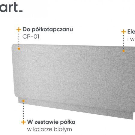 Naslon za glavo CP-12 je namenjen omarni postelji CP-01 za vzmetnico širine 140 cm. Vzglavje ima v kompletu poličko v beli ali sivi barvi.