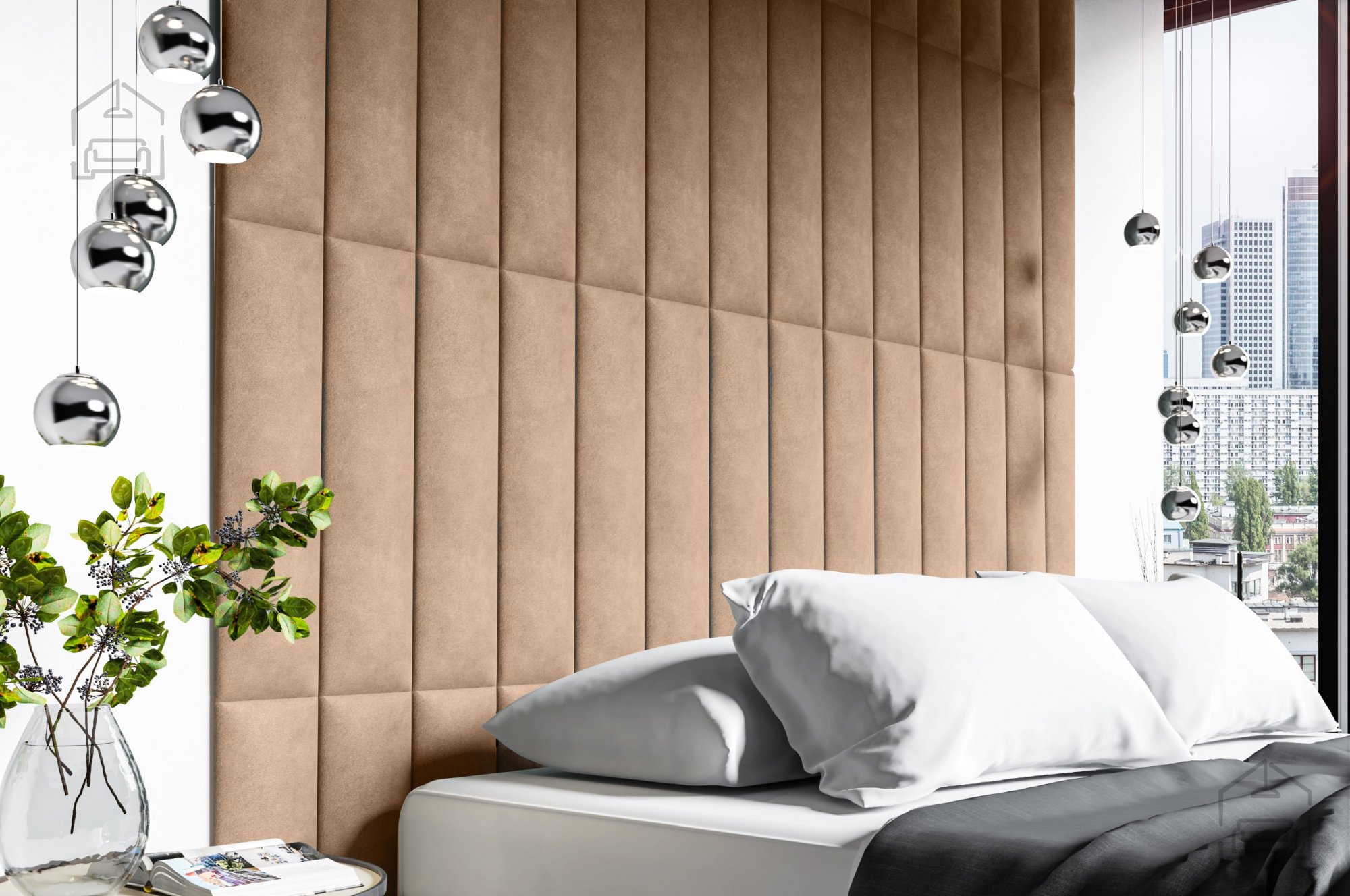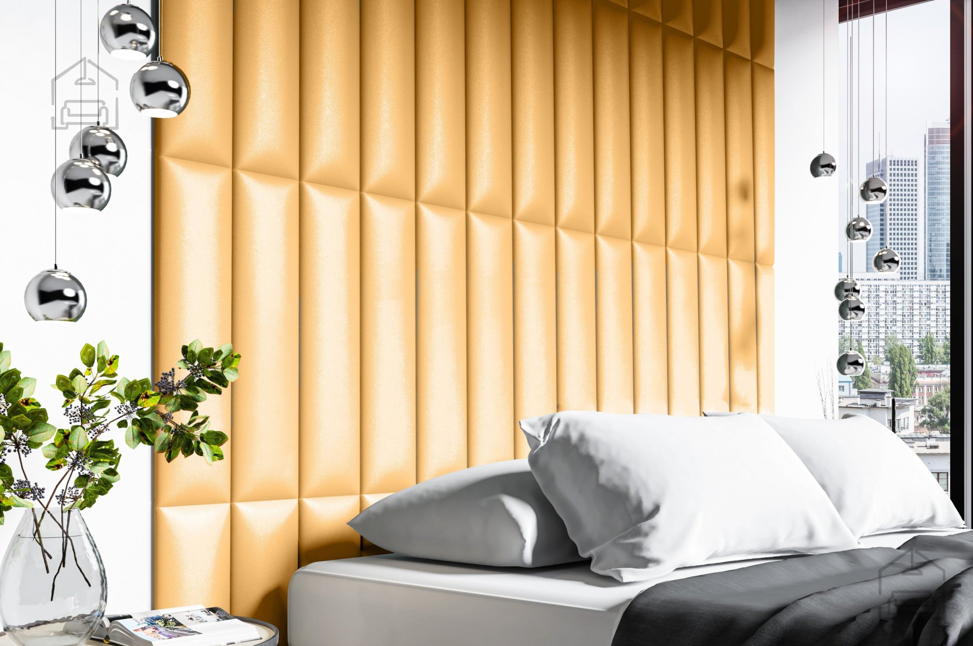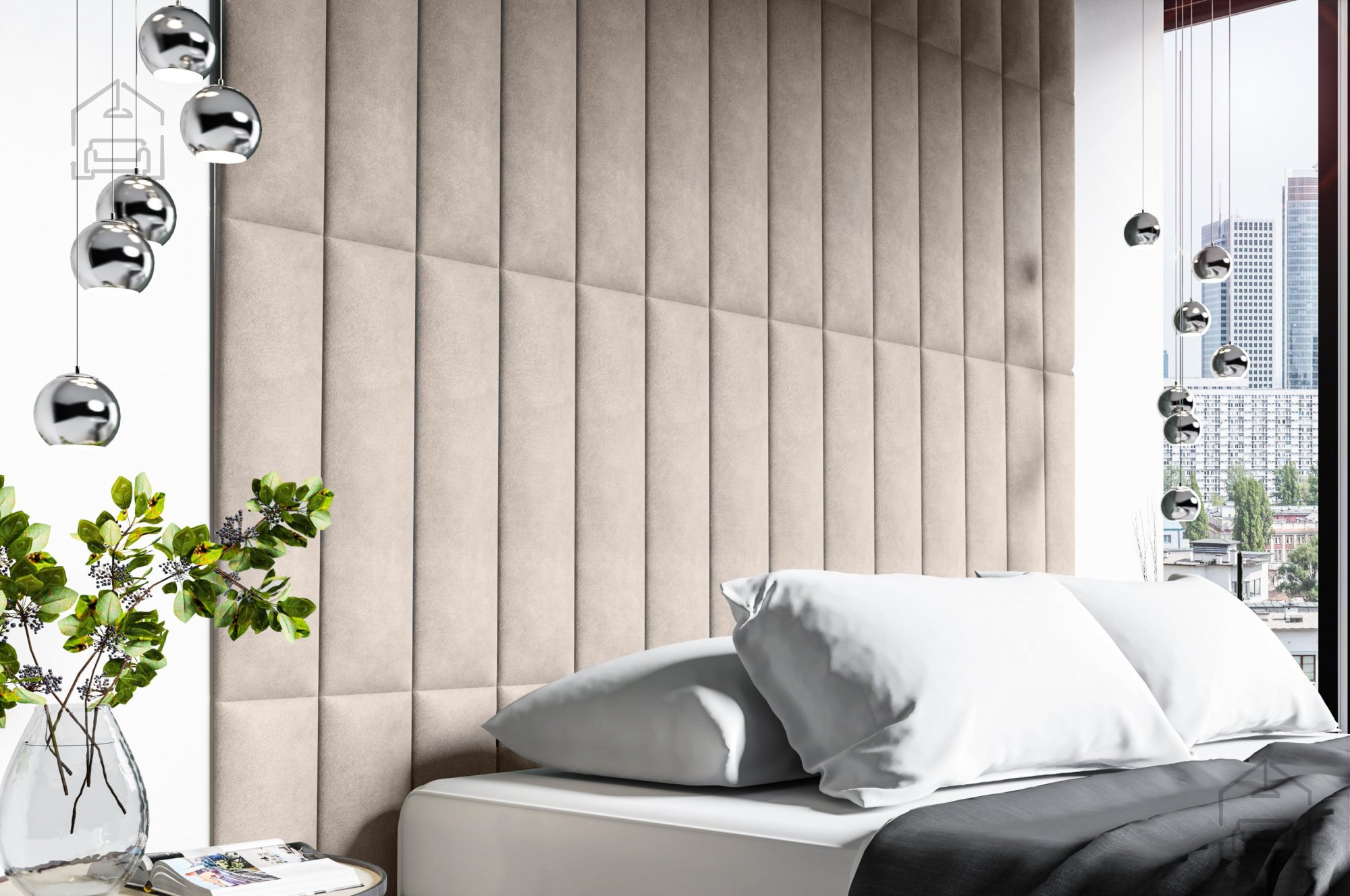 Tkanina na sliki: Trynity 01Dimenzije: 800x150x35 mm Tapecirana oziroma oblazinjena stenska plošča v velikosti 80x15 cm se lahko uporablja kot oblazinjeno vzglavje postelje, Je odličen dekor za vašo spalnico. Z njo lahko ustvarite poljuben vzorec v poljubni velikosti. | Material: Laminirana plošča