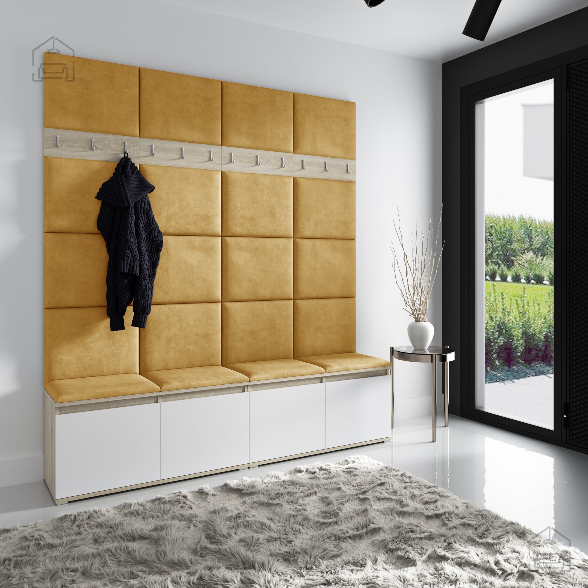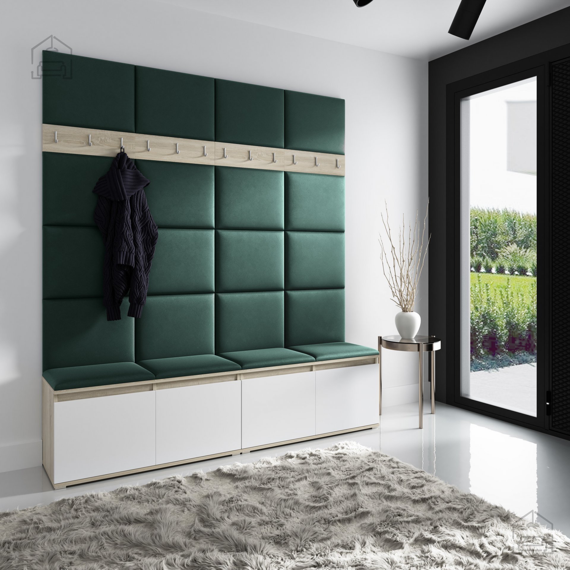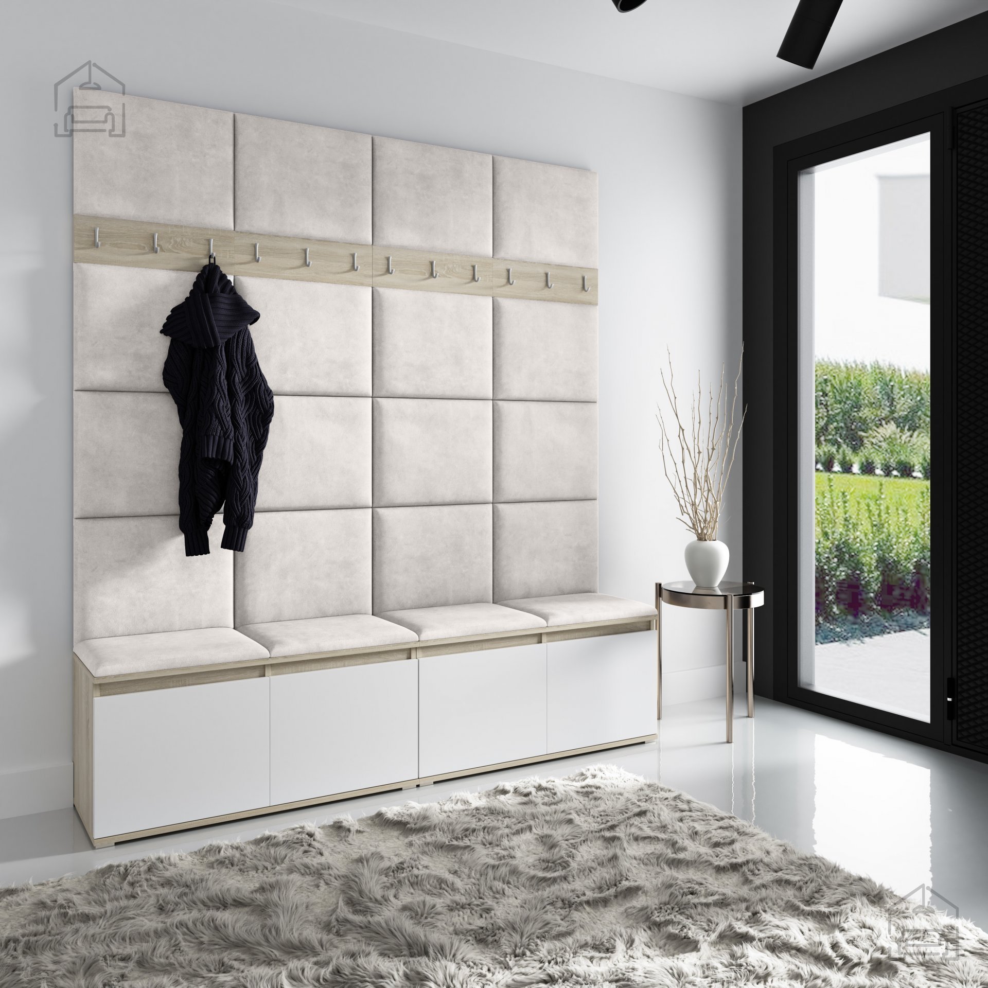 Tkanina na sliki: Trynity 01Dimenzije: 300x300x35 mm Tapecirana oziroma oblazinjena stenska plošča v velikosti 30x30 cm se lahko uporablja kot oblazinjeno vzglavje postelje, Je odličen dekor za vašo spalnico. Z njo lahko ustvarite poljuben vzorec v poljubni velikosti. | Material: Iveral in MDF