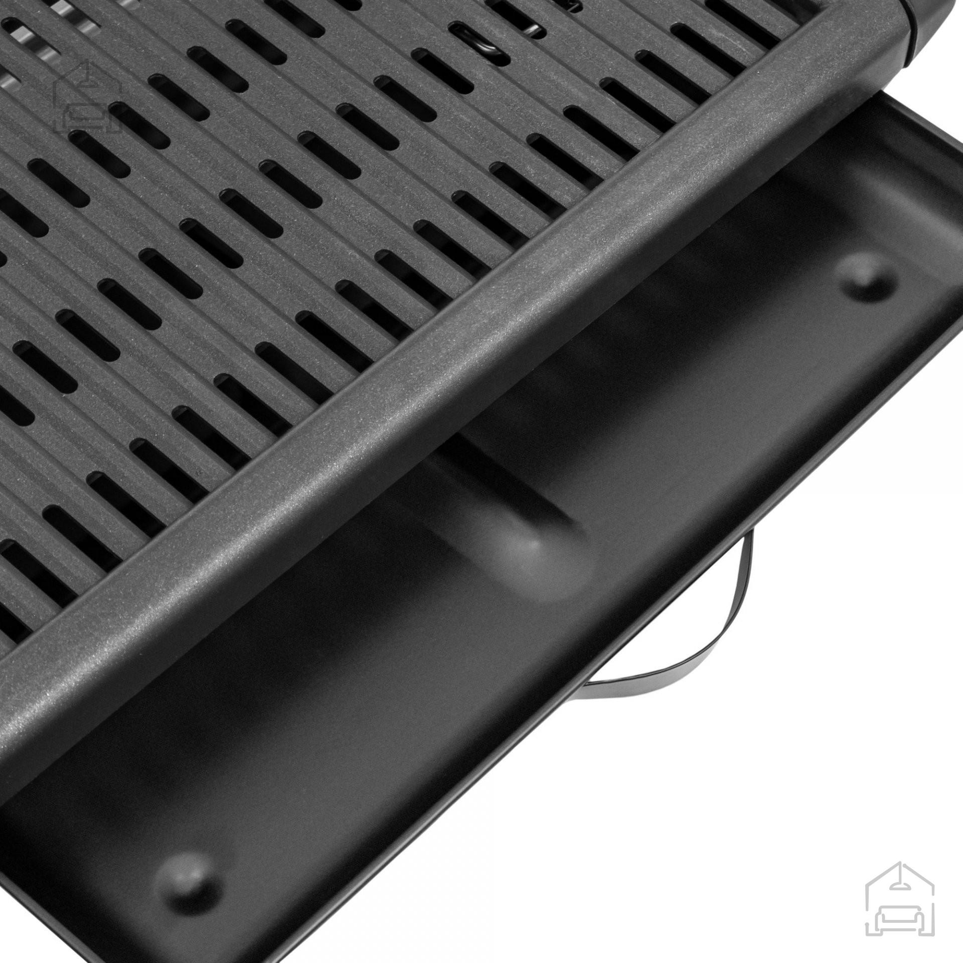 Kompakten električni žar, ki se bo odlično obnesel na vrtu, terasi, pa tudi doma. Brezdimno napravo lahko uporabljate kjerkoli. Oprema je opremljena z regulacijo moči v območju 1200 - 1400 W. Rešetka je izdelana iz aluminija in ima premaz proti prijemanju, kar olajša pripravo različnih vrst jedi. Zložljiv pladenj za odcejanje maščobe olajša čiščenje med cvrtjem.