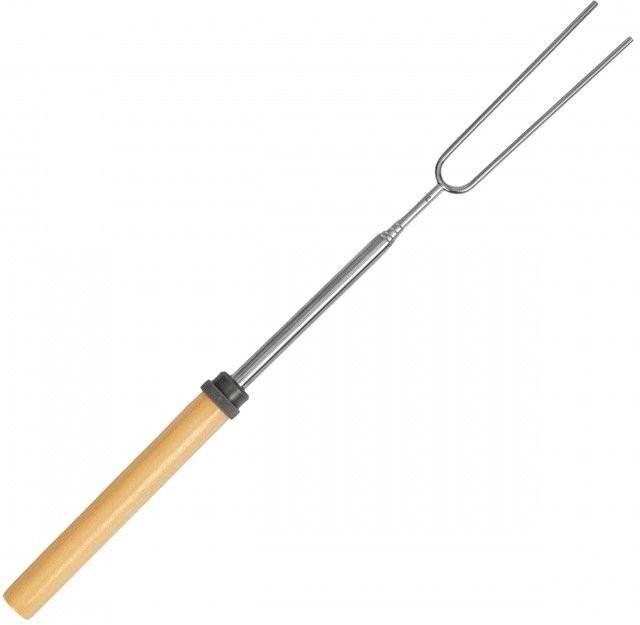 Dimenzije: 0x310x0 mm Praktična teleskopska palica za cvrenje klobas na žaru ali tabornem ognju. Prednost je funkcija prilagajanja v območju 31 - 80 cm, ki omogoča prilagajanje palice potrebam uporabnika. Uporabni del je iz nerjavečega jekla, ročaj pa iz lesa.
