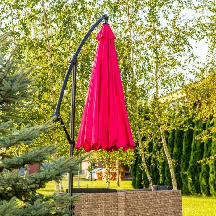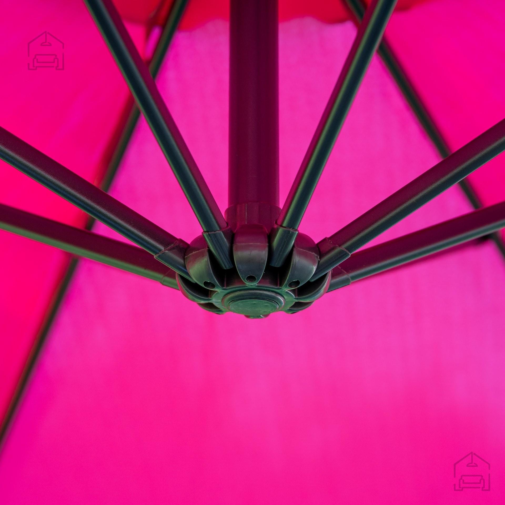 Dežnik je praktičen in funkcionalen. Nastavitveni mehanizmi, uporabljeni v konstrukciji, omogočajo optimalno nastavitev glede na potrebe uporabnikov. Velik nadstrešek daje možnost senčenja večje površine počivališča. Zahvaljujoč uporabljenim materialom bo trajal dlje. Dežnik fuksija odlikuje klasičen dizajn, ki se odlično prilega vsaki ureditvi teras in vrtov.
