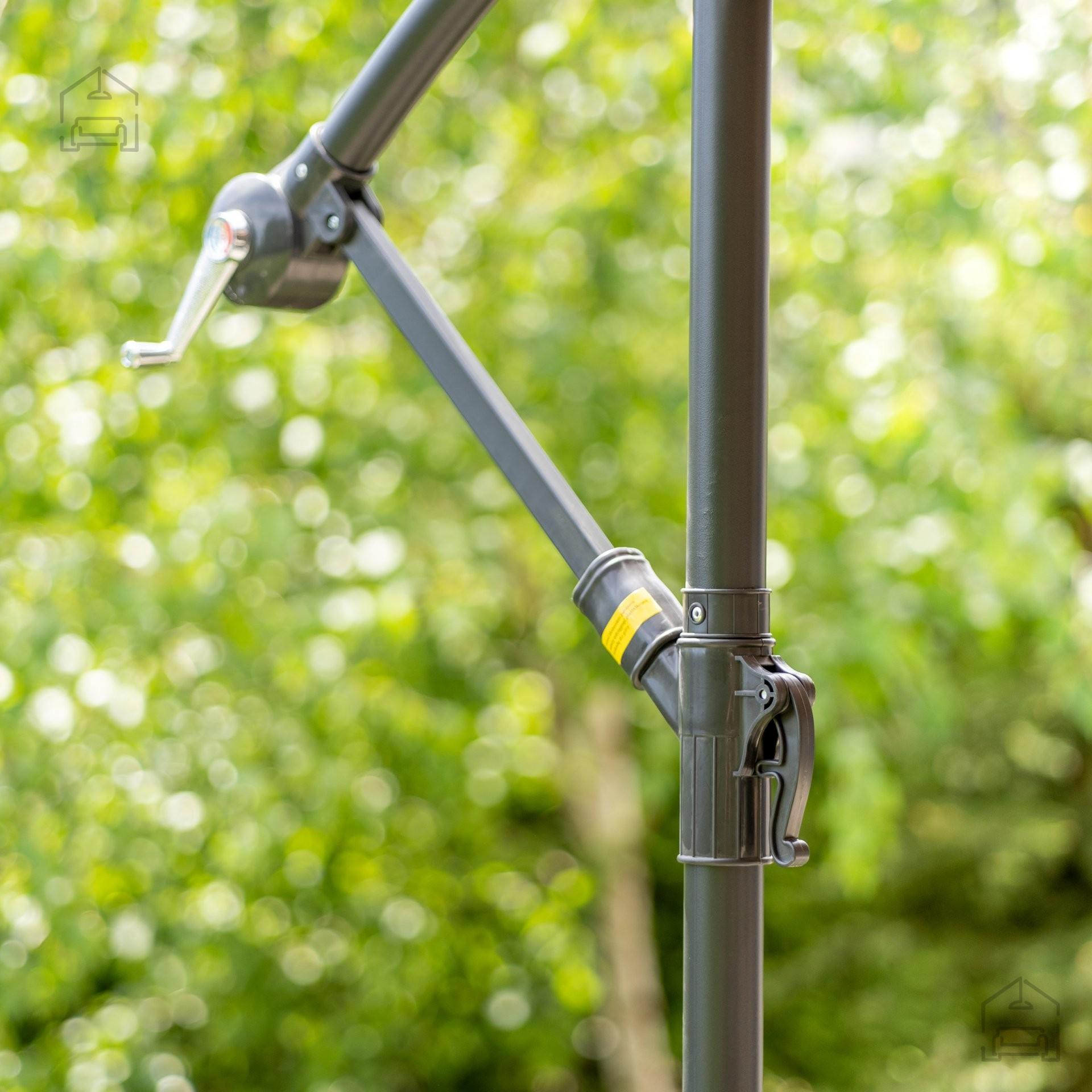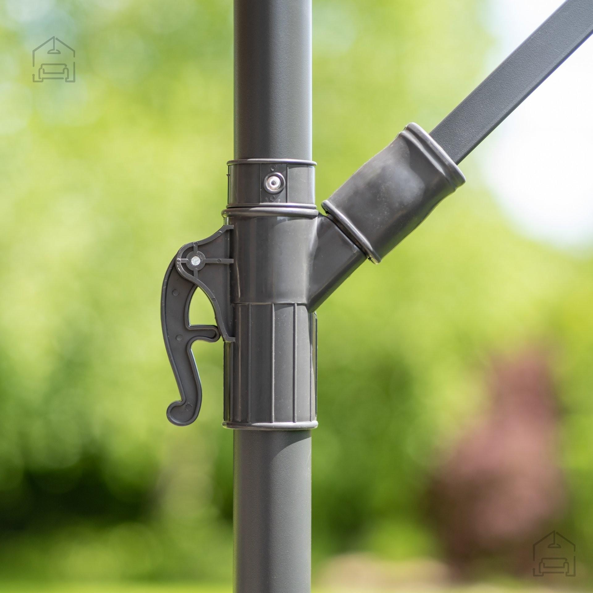 Klasičen vrtni senčnik s premerom 3 metrov, ki se bo odlično znašel na vrtu in terasi. Stranska struktura v kombinaciji z veliko površino časovnika omogoča senčenje večje površine prostora za sprostitev. Jeklena konstrukcija je trdna, zato bo dežnik zdržal dlje. Plašč nadstreška je poliester, ki je popoln za uporabo na prostem. Ročični mehanizem zagotavlja udobje pri odvijanju in zlaganju dežnika. Stabilnost konstrukcije se ohranja zahvaljujoč 8 rebrom v nadstrešku in trdni križni podlagi. Dežnik je enostaven za uporabo in bo popoln za vsakodnevno uporabo.