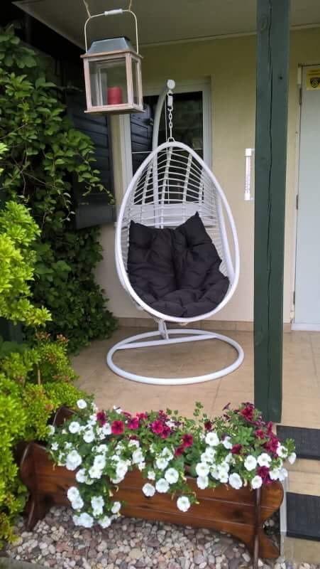 Barva: bela + sivaDimenzije: 790x1950x600 mm Ekstravagantni kokon je bil ustvarjen za tiste, ki cenijo razkošje in udobje. Idealno za balkon ali teraso. Izvirni dizajn in oblika kokona bosta navdušila vsakogar. Zaradi modnega in modernega dizajna se kos pohištva popolnoma prilega vsakemu aranžmaju. Jekleno ogrodje je opleteno z visokokakovostnim ratanom, ki je odporen na škodljive vremenske vplive. Stabilna konstrukcija in dovolj velik podstavek zagotavljata varnost in najvišje udobje počitka. Kokon je odporen na dež ali dolgotrajno izpostavljenost UV žarkom. Pletenica se ne razbarva ali popači. Eleganten, siv vzglavnik poveča udobje počitka, doda razred in neverjeten čar.