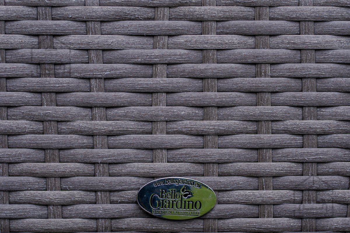 Zakaj izbrati pohištvo Bello Giardino? Visokokakovostni sintetični rattan je garancija za dolgotrajno delovanje. Pohištvo Bello Giardino ne izgublja barve zaradi škodljivih UV žarkov ter ne absorbira vlage, odporno je tudi proti zmrzali. Zagotavljamo, da boste z izbiro pohištva Bello Giardino večino svojega časa preživeli na vrtu in uživali v udobju in estetiki našega pohištva. Ekskluzivno pohištvo je kombinacija visokega udobja in elegance. | Material: rattan, kovina, tkanina