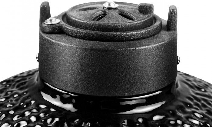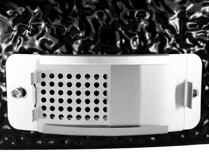 - Odprtina iz litega železa na vrhu: omogoča lažji nadzor pretoka zraka in s tem notranje temperature.
