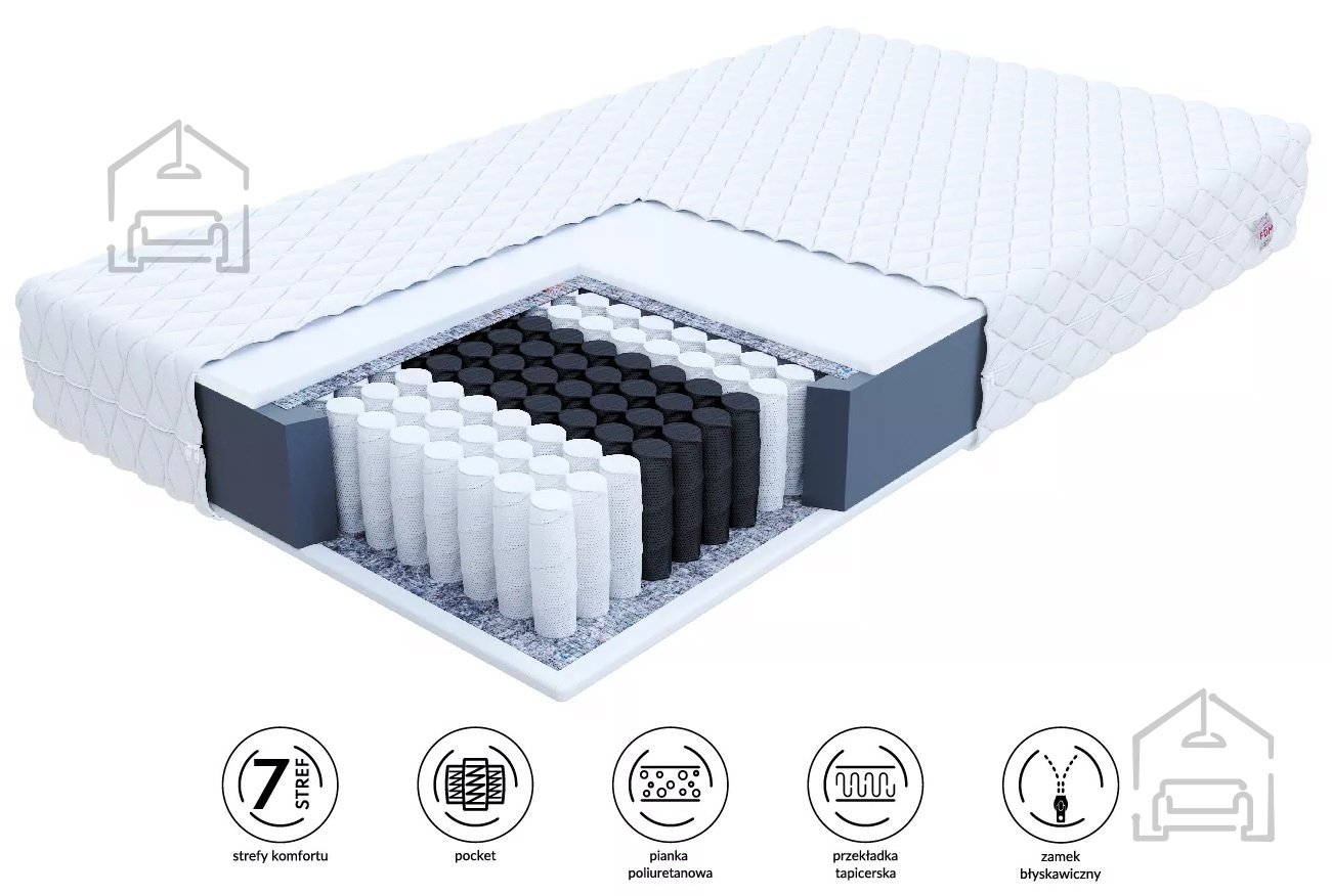 Vakuumsko pakiranje: DaDimenzije: 900x230x2000 mm Treviso Maxje klasičen model, ki ima žepkaste vzmeti, ki so izdelane v tehnologiji NanoHARD. Dvojno kaljena žica bistveno podaljša njihovo življenjsko dobo. Zahvaljujoč uporabi 7 con različnih trdot, vzmetnica zagotavlja ergonomski položaj telesa med počitkom. Neodvisno delovanje vzmeti odpravlja učinek upogibanja velike površine žimnice pri pritisku na njeno majhno površino. Zahvaljujoč temu druga oseba ne bo čutila kakršnega koli gibanja. Žepni vložek je obdan s poliuretansko peno T25, odporno na deformacije.