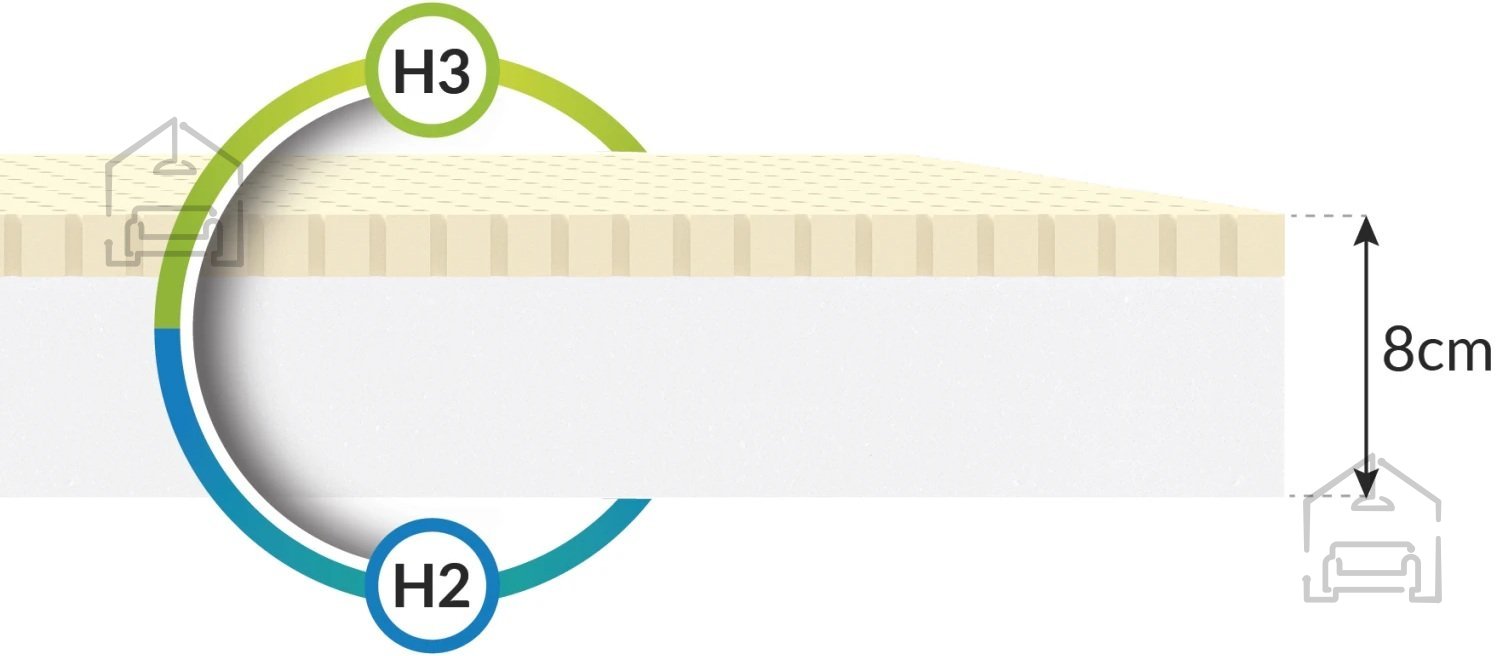Materiali, ki se uporabljajo pri izdelavi vzmetnic, so različne vrste poliuretanske pene, lateksa, viscolateksa itd., gre za izdelke z visokim koeficientom stisljivosti in elastičnosti, zato si proizvajalec pridržuje pravico do negativne in pozitivne tolerance +/- 2% za širino in dolžino vzmetnice in +/- 1 cm do njene višine. | ZBUDITE SE SPOČITI IN IZJEMNO SVEŽI!